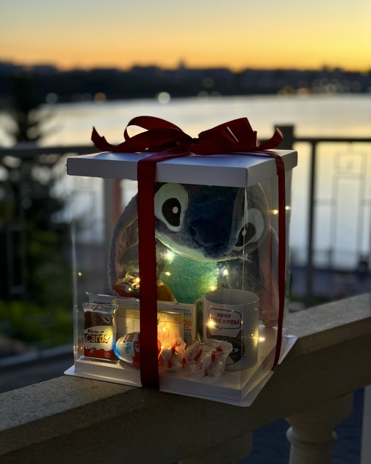 Наш подарунковий бокс із милим Stitch, улюбленими солодощами та стильним упакуванням - це готовий сюрприз, який економить час та дарує незабутні емоції.